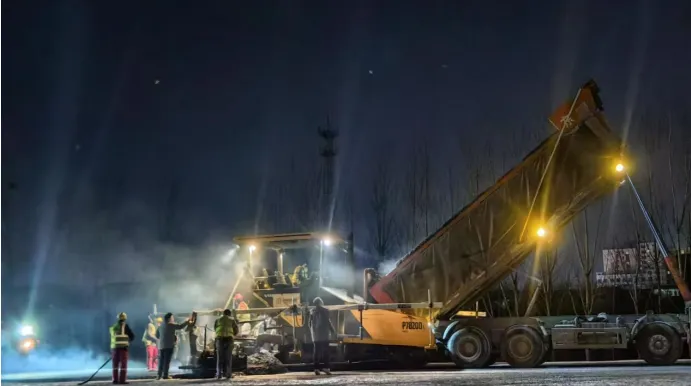 數(shù)九隆冬寒意濃。1月10日深夜,國(guó)道107線(xiàn)東移開(kāi)封境(炎黃大道至許昌交界)新建工程施工項(xiàng)目瀝青攤鋪工程正上演了一場(chǎng)時(shí)間與速度的激烈角逐。在這寒氣籠罩大地的時(shí)刻,項(xiàng)目部全體參建者們,采取“白加黑”“五加二”的工作模式,奮戰(zhàn)在施工一線(xiàn),將全部身心投入到搶工期的“戰(zhàn)斗”中,為此次攤鋪任務(wù)順利完成開(kāi)啟了“加速鍵”。