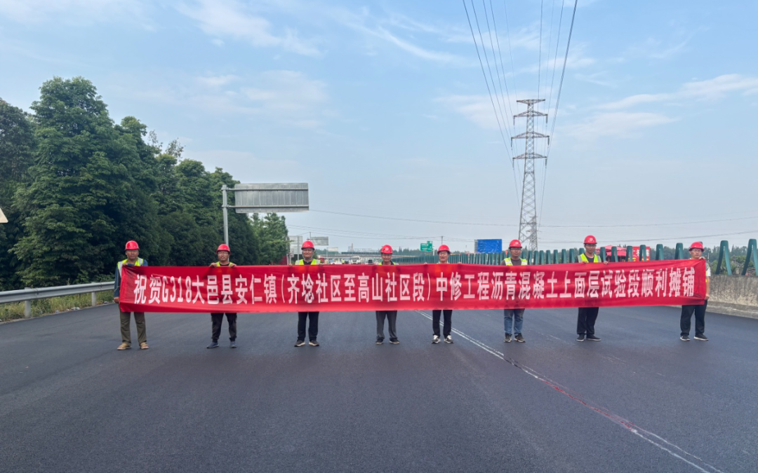 2025年5月21日,隨著最后一車瀝青混凝土攤鋪碾壓完成,G318大邑縣安仁鎮(zhèn)(齊埝社區(qū)至高山社區(qū)段)中修工程瀝青混凝土上面層試驗(yàn)段順利完工,標(biāo)志著該項(xiàng)目取得關(guān)鍵性進(jìn)展,為后續(xù)14公里路面施工奠定了堅(jiān)實(shí)基礎(chǔ)。